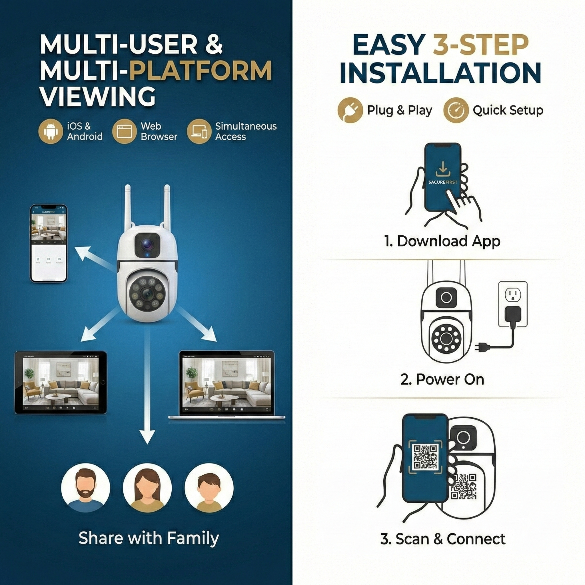 SecureFirst Ultra-HD Dual Lens WiFi Security Camera – 360° PTZ Indoor/Outdoor Surveillance with Color Night Vision, Motion Tracking, Two-Way Audio, & Remote App Monitoring